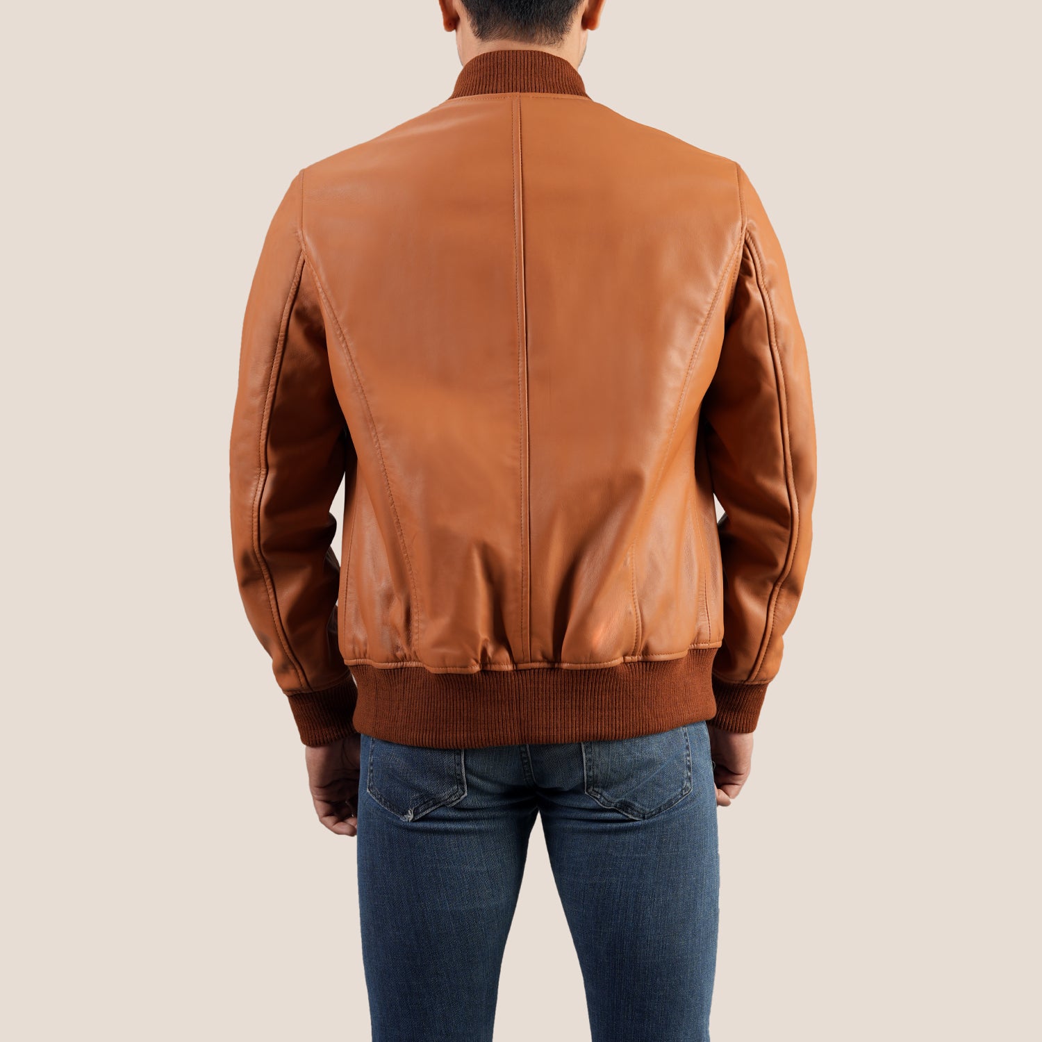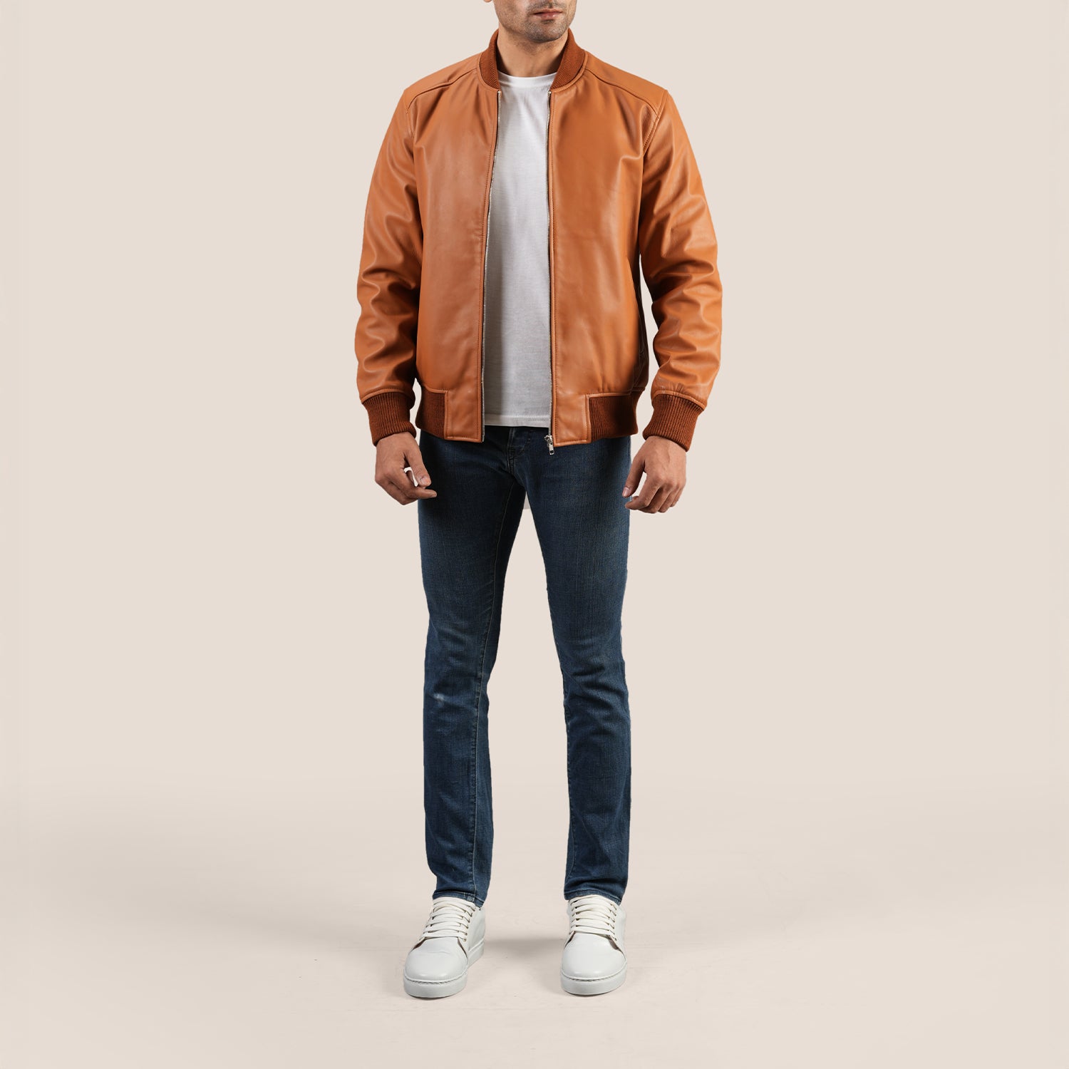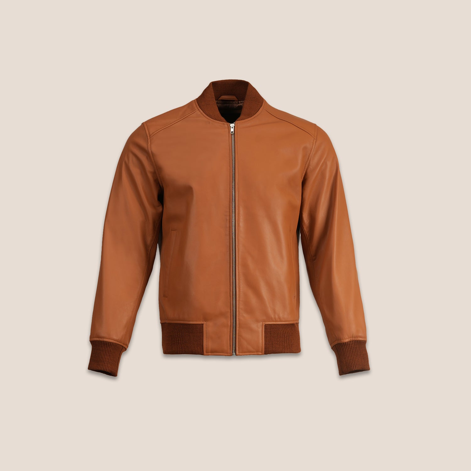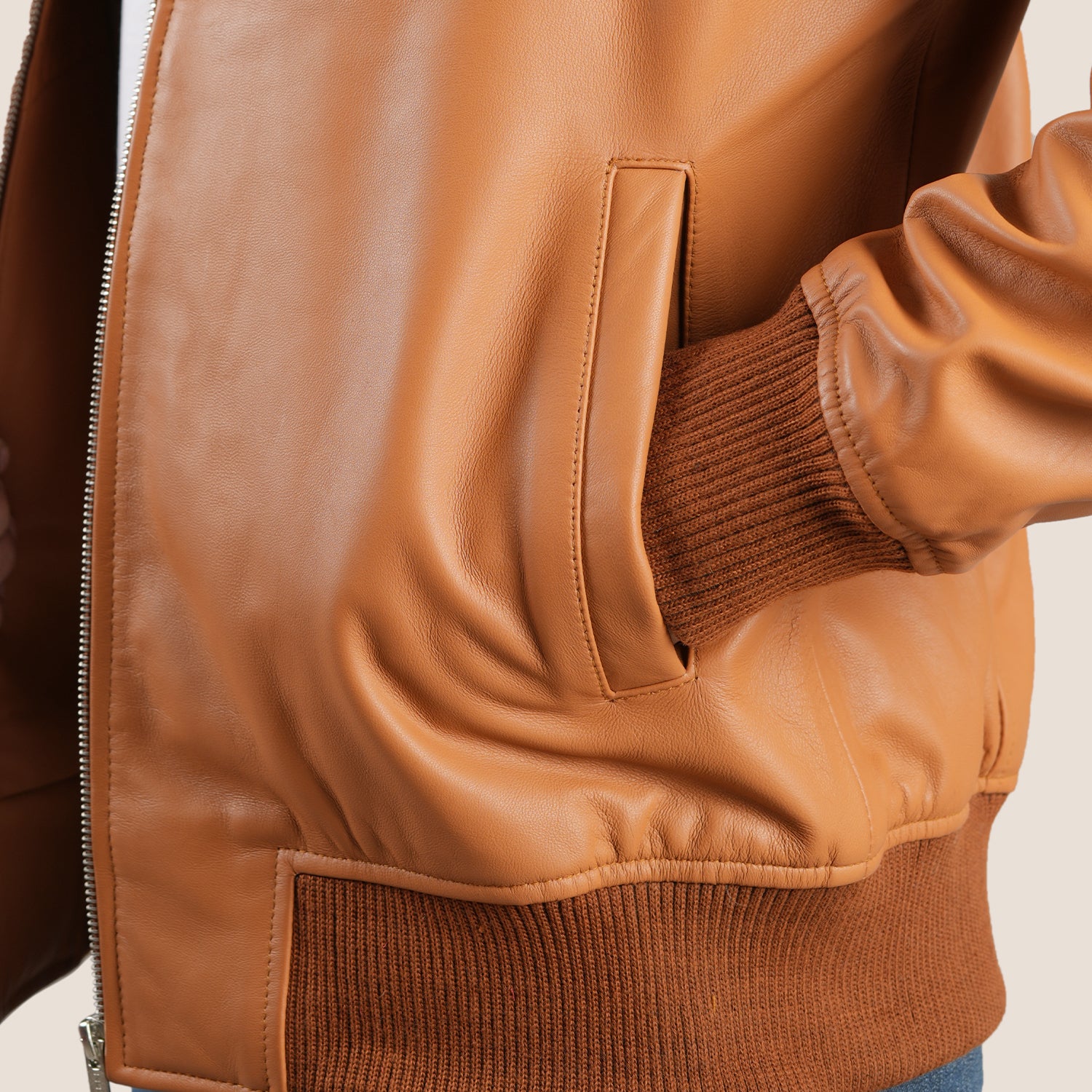 The rich tan brown sheepskin in this jacket is more than a shade; it is a texture you can feel every time you wear it. Smooth leather panels keep their form with the help of ribbed trims, while the zip front adds ease. Lined in polyester for comfort, it offers two interior and two exterior pockets, merging warm tone, structure, and genuine daily function effortlessly.
